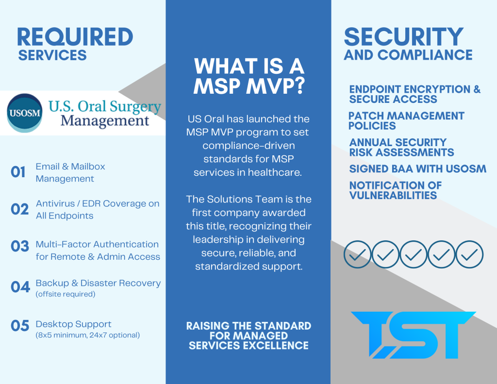 Jackson, Mississippi – November 12, 2025— TST is proud to announce that it has been named the inaugural “MSP MVP” by US Oral Surgery Management (USOSM) — a national leader in the dental service organization (DSO) space.